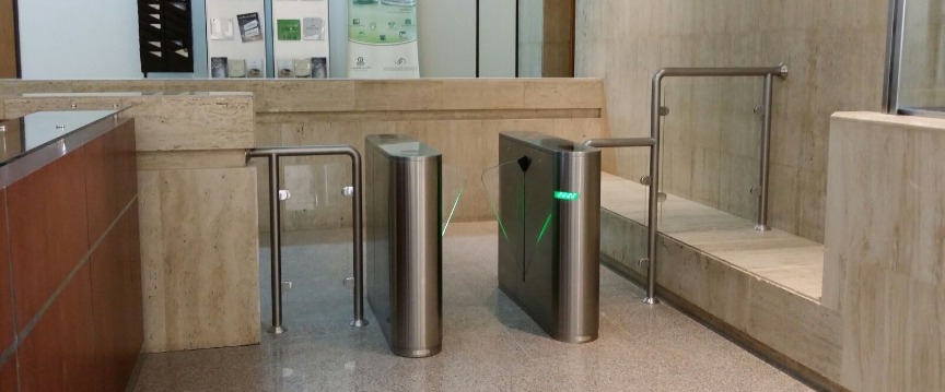 適合安裝於商辦大樓入口處,管制人員進(jìn)出,並作為現(xiàn)代建築材料於設(shè)計之初一併參與設(shè)計,提升建築整體之質(zhì)感,並且可與樓宇自動化、智慧大樓等系統(tǒng)做結(jié)合,達(dá)到安防、安全、美觀,面面俱到之狀態(tài)。也可與臉部辨識系統(tǒng)、指紋機(jī)、監(jiān)視系統(tǒng)、投幣機(jī)、刷卡機(jī)及驗票回收系統(tǒng)…等系統(tǒng)整合。