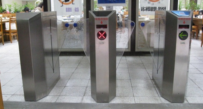GR-715 快速通關(guān)機設(shè)置於人員出入口,可與辨識系統(tǒng)、監(jiān)視系統(tǒng)、投幣機、刷卡機及驗票系統(tǒng)等連線控制,單向或雙向管制人員進出。通行者經(jīng)辨識後,門板快速開啟,每次通行一人。遇有尾隨則會發(fā)出警訊聲音。