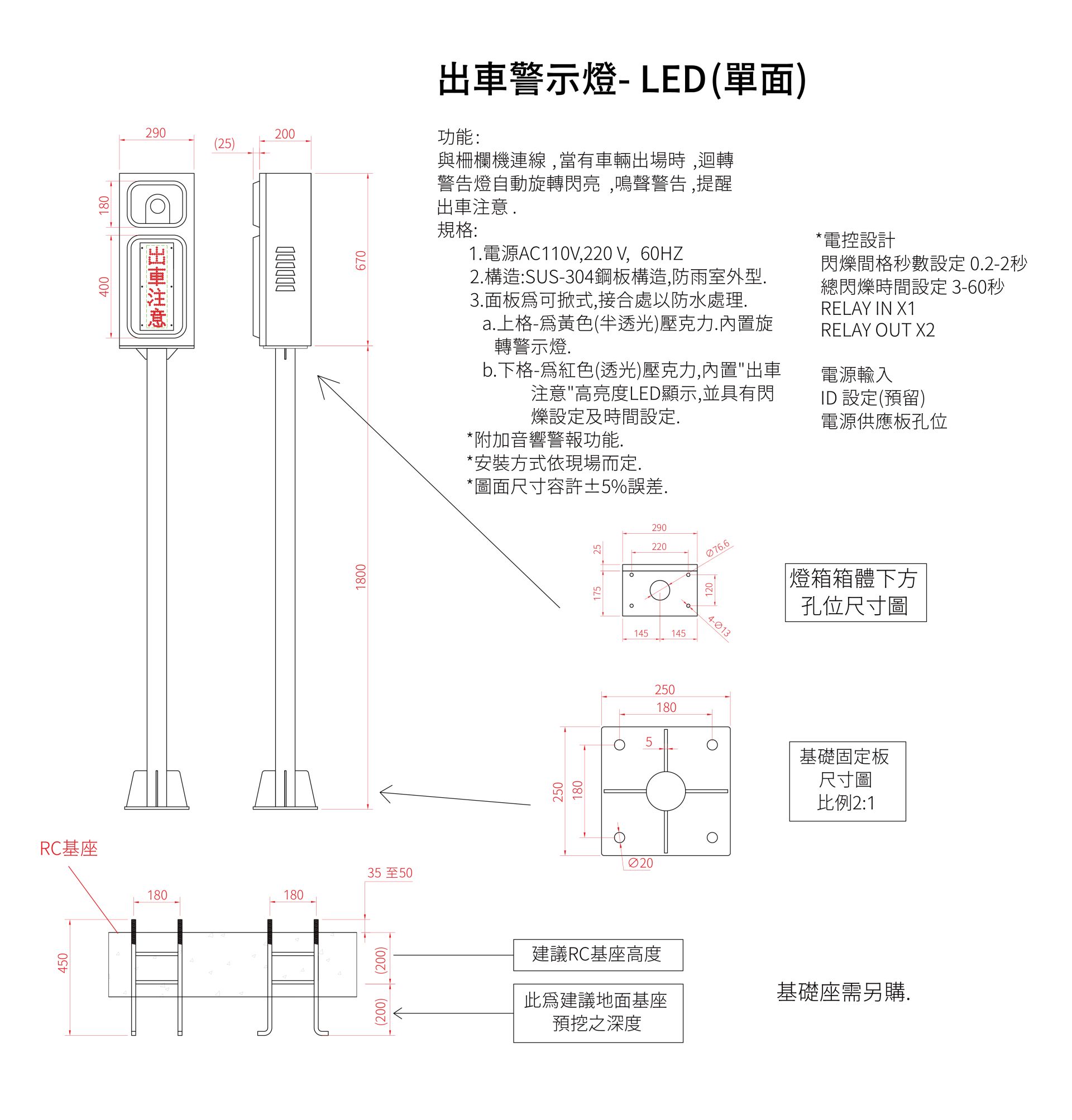 ? 出車注意:?5mmLED燈,可閃爍時間及閃爍動作設定。