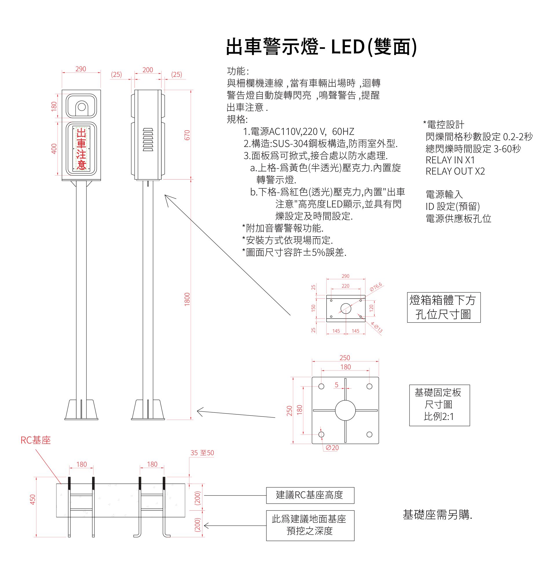 ? 出車注意:?5mmLED燈,可閃爍時間及閃爍動作設定。